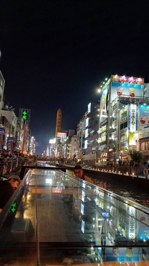 After spending the day wandering around the castle and city, we hopped onto a boat for a tour of Osaka’s vibrant nightlife in Dotonbori. The canal offers a unique perspective of the area, with its lively atmosphere, bright neon lights, and mouth-watering street food—definitely a must-see on your bucket list. That said, I’ll admit, while Dotonbori is famous and lively, it’s also incredibly touristy and crowded. Be prepared for the hustle and bustle, as navigating through the sea of people is part of the experience.