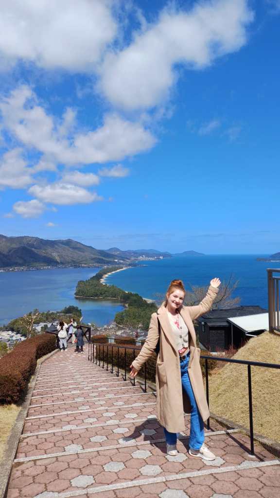 We started off in the famous Amanohashidate with its breathtaking natural beauty. Located in Miyazu along the coast, this landscape boasts a narrow sandbar with pine trees stretching across the bay. The name Amanohashidate roughly translates to “Bridge to Heaven,” and according to legend, it was once a place where the gods used a pine tree to create a bridge connecting Earth to the heavens