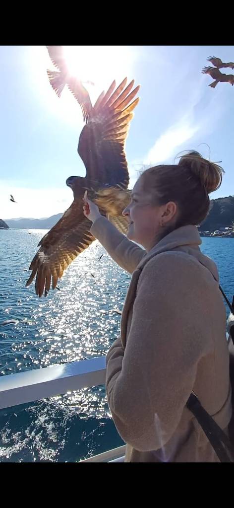 I bought some snacks to lure in the seagulls and even a few eagles, but little did I know, the birds were lightning-fast! As soon as I held out the snacks, they swooped in with impressive speed, snatching them right out of my hands. After quite a shock and few stolen snacks, I managed to capture some incredible shots of the birds in flight. It almost looked like they were dancing around the ferry, their wings spread wide as they soared through the air.