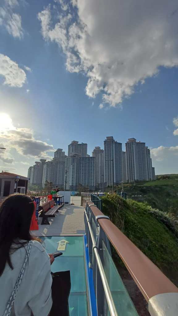 We also checked out the Songdo Cloud Trails / Songdo Suspension Bridge, another scenic cliffside viewpoint. Yes, more heights, and yes, I was mildly terrified—but it’s worth it. Entry is just 1,000 won, and it’s ideal for an early morning or sunset stroll.