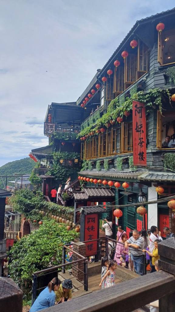Walking through the markets, I tried many teas and bought a few trinkets for myself and family back home.One thing to note about Jiufen — it’s undeniably a tourist hotspot. Navigating through the packed alleyways and weaving past crowds can definitely take away from the charm. But after doing our best to dodge elbows and maintain some sort of order, we made our way to one of Taiwan’s most iconic and historic teahouses: A-Mei Teahouse. What started out as a blacksmiths store is now a classic teahouse which offers the traditional oolong tea. This can be given either inside or on the scenic rooftop terrace overlooking the misty hills.