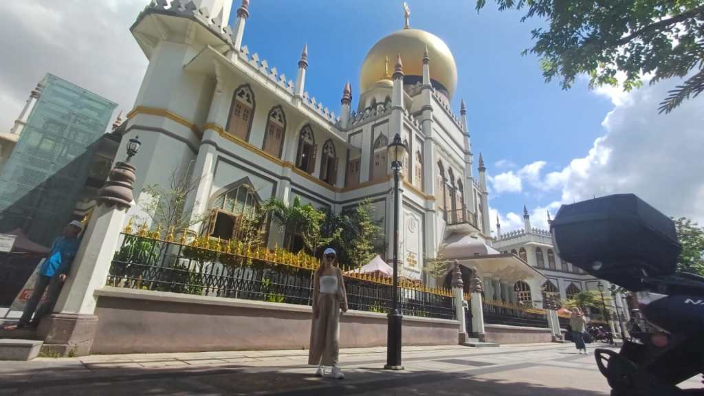 Past the markets and murals, we came across Masjid Sultan. Originally built in 1824 for the Sultan Hussein Shah, it has huge golden dome with glass bottle ring bases and holds one of the largest prayer halls.It stands out with its huge golden domes, each surrounded by a ring of black glass bottles at their base (donated by the community, so all could contribute). The mosque houses one of the largest prayer halls and has seen numerous architectural changes throughout history.