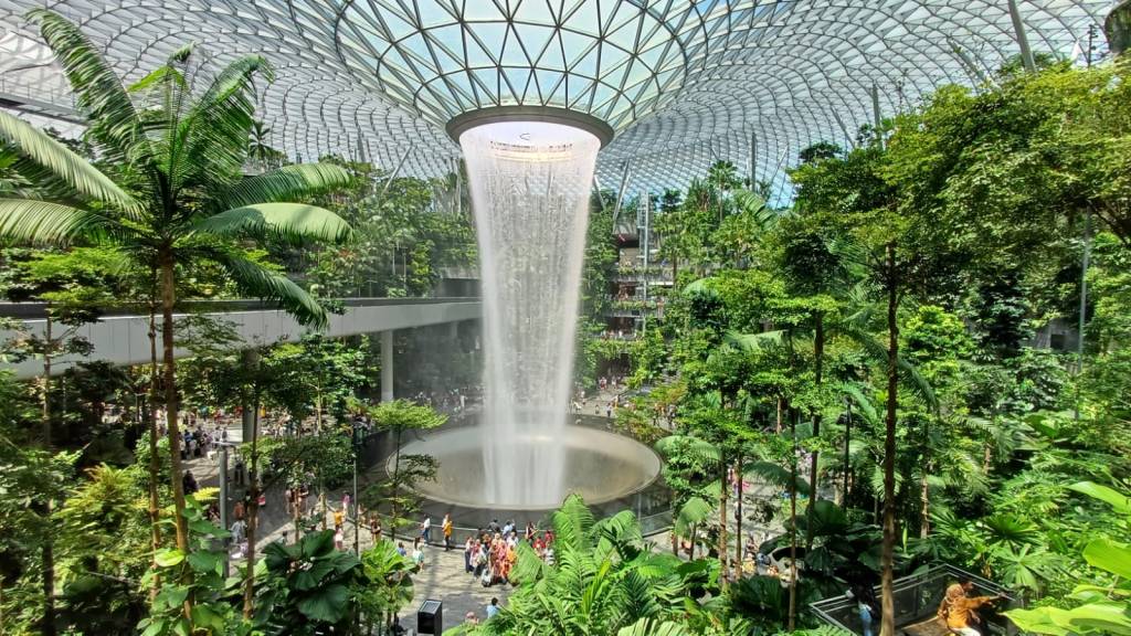 Once we got through, we saw the famous indoor waterfall—the one that flows through the centre of Jewel Changi Airport. It was genuinely spectacular. A literal jungle vibe inside the airport. The whole space is massive—full of shops, restaurants, and activities. People weren’t lying when they said you could spend a full day there.